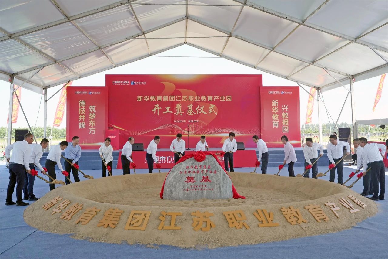 7月22日上午,新华教育集团江苏职业教育产业园项目在六合区龙袍新城举行奠基仪式。市政府副秘书长陈友明,市人社局党组书记、局长孙爱军,区委书记周勇,区人大常委会主任彭家龙,区政协主席孙宇瑾,中国东方教育集团董事会主席、新华教育集团董事长吴伟,中国东方教育集团、新华教育集团副总裁汪俊出席并共同见证。