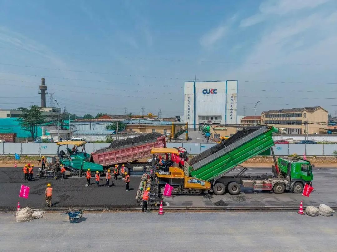 501省道六合雄州至西坝港区段建设工程左幅机动车道水稳下基层近日已经正式开铺,标志着该工程进入路面施工关键阶段。该段落长910米,水稳下基层宽13.5米,厚18厘米,理论吨位约5200吨。指挥部提前部署,在路基断面验收合格的第一时间内进入路面施工。