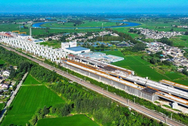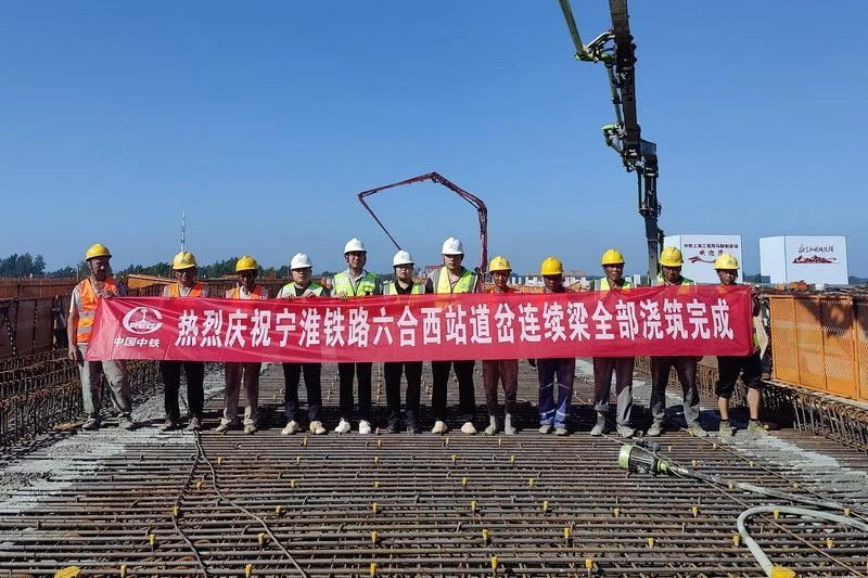 近日,宁淮城际铁路5标项目六合西站最后一段道岔连续梁浇筑完成。至此,该站全部22联、总长3889延米的道岔连续梁施工任务圆满完成,为后续工程高效推进奠定了坚实基础。