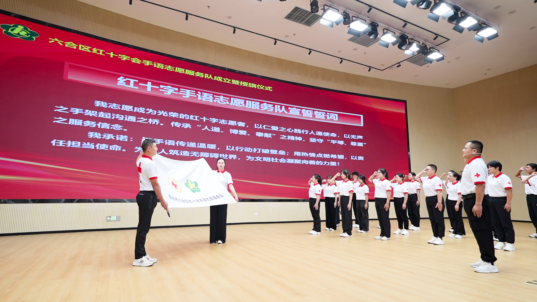 沟通,是连接心灵的纽带;手语,是打破壁垒的桥梁。10月15日下午,“手语传情 ‘红’暖人间”六合区红十字手语志愿服务队成立暨授旗仪式举行,用实际行动践行“人道、博爱、奉献”的红十字精神,关爱听障人士,传递社会温情。