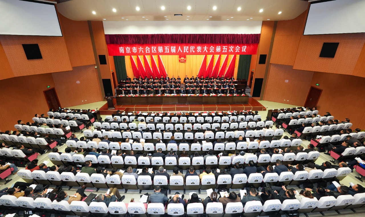 1月8日上午,南京市六合区第五届人民代表大会第五次会议召开第二次全体会议,听取南京市六合区人大常委会工作报告、南京市六合区人民法院工作报告和南京市六合区人民检察院工作报告。周勇、董涵、徐健、孙宇瑾等区领导,以及大会主席团成员在主席台就座,主席团常务主席、区人大常委会副主任薛其松主持会议。