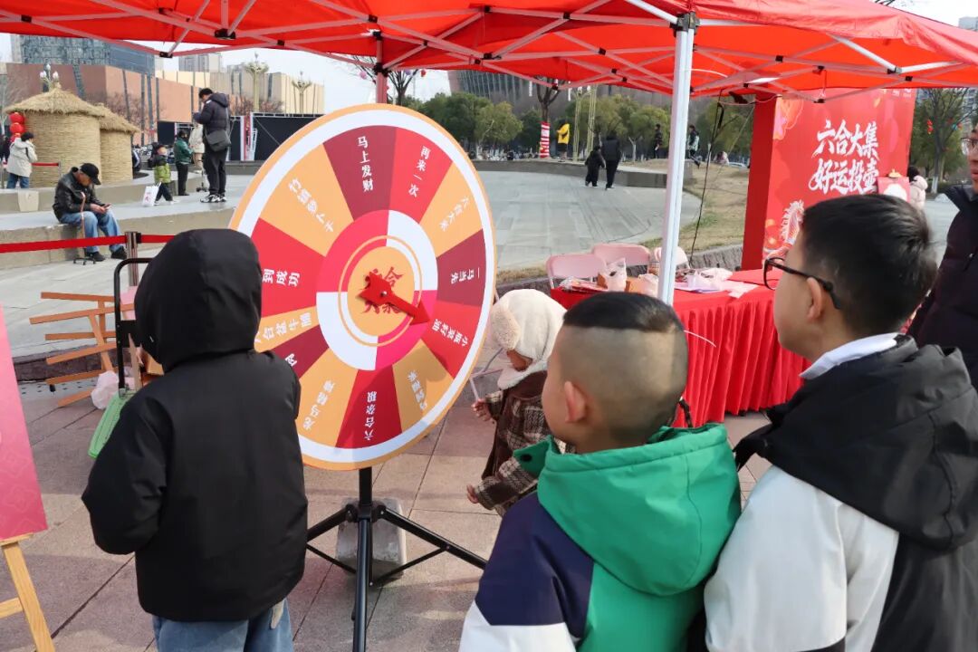 除了“买买买”,大集更准备了丰富多彩的互动体验。猜灯谜、投壶、幸运转盘等游戏区欢笑不断,小朋友踮着脚转动幸运大转盘,期待抽中奖品。