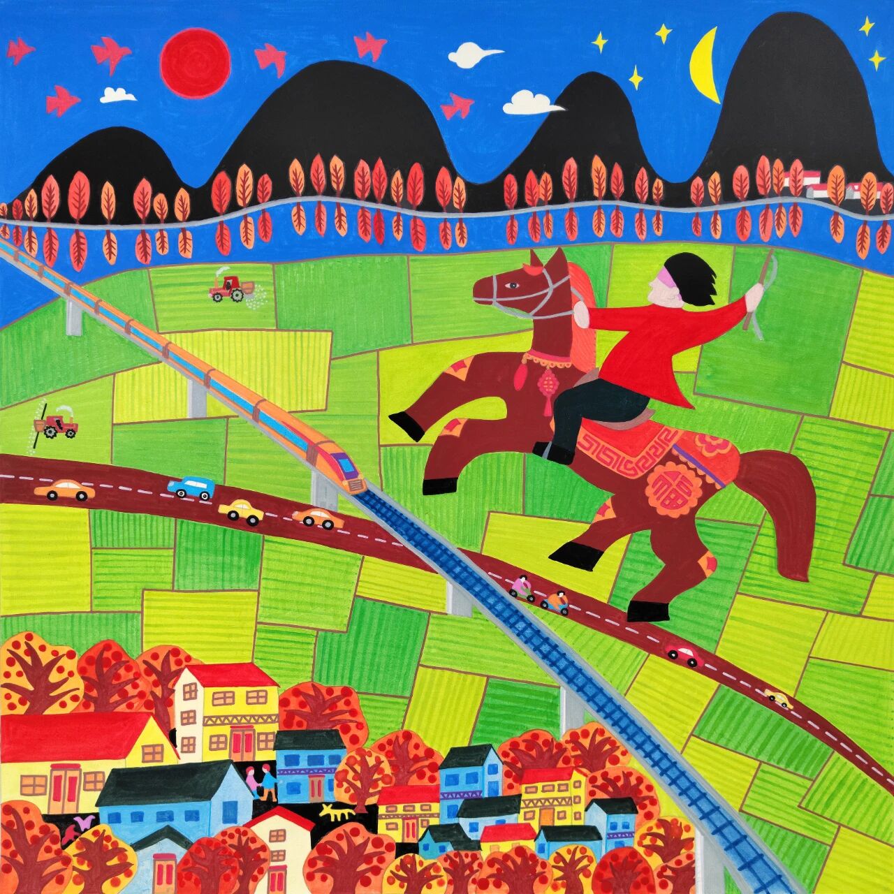 下面一起欣赏部分马年主题的农民画作品