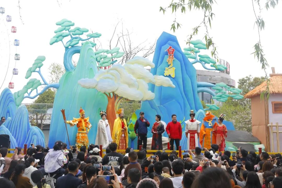 女儿国主题区域则充满温情与浪漫,徐少华与现场演员默契对戏,共同唱响经典曲目《女儿情》,婉转的歌声缓缓流淌,勾起了无数人的童年回忆,现场观众纷纷跟着哼唱,氛围感拉满。