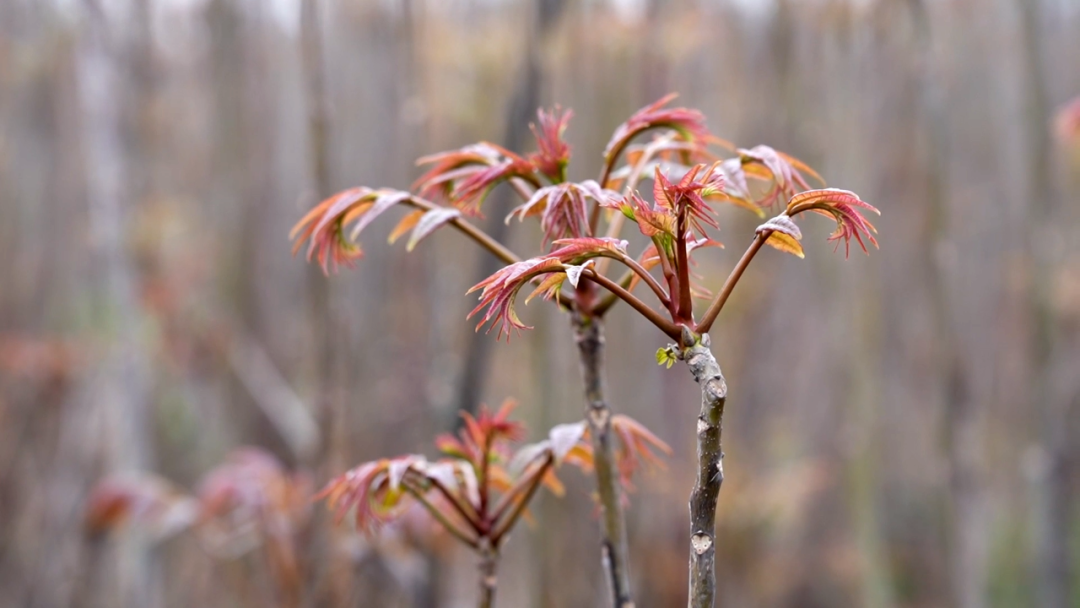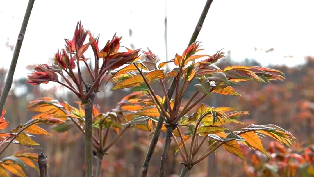 放眼望去,漫山遍野的香椿树整齐排列。走近细看,每棵树的枝头都已探出紫红鲜嫩的椿芽,这些密密匝匝的嫩芽随风轻摆,浓郁的香味扑面而来。香椿林里,村民们穿梭其间,熟练地摘下紫红鲜嫩的椿芽。每年三月中旬至四月底是采摘旺季,为保证香椿口感鲜嫩,村民们必须在芽叶完全展开前采收完毕,采下的椿芽经分拣、包装后,立刻运往市场。