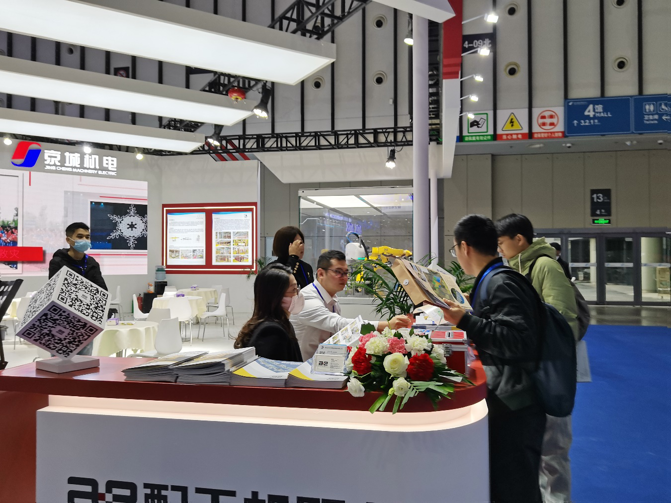 据悉,大会展览共设置4大展区,招商成员首先进入4号馆来到藦卡、云华智能、钡铼、配天等展区了解智能工业机器人产业,投递街道宣传页,介绍程桥工业园区区位优势和土地使用情况,欢迎企业投资落户程桥