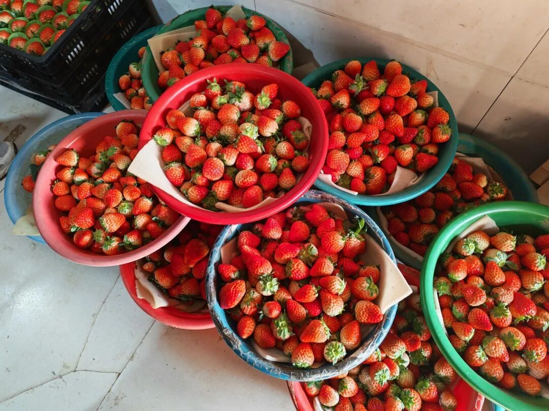 “今年我共种植了20亩草莓,主打的品种是奶油草莓!”合作社负责人杨中亮介绍道,“首批采摘的草莓是在2025年的12月9日,截至目前,采摘已经有一个月,现在平均每个大棚一天的采摘量在100斤。”
