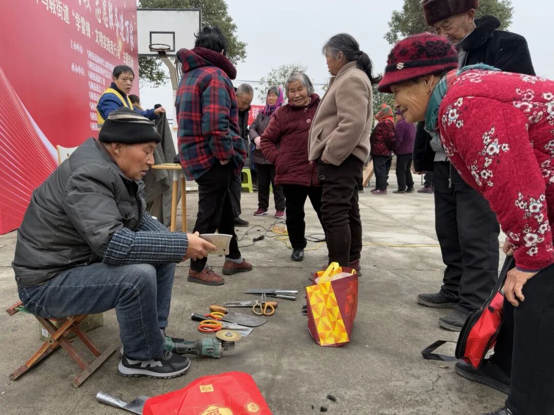 办好生活实事,化解日常难题。贴近生活的便民项目受到了热烈欢迎,“铲刀磨剪子”志愿服务,让钝化的刀具在志愿者手中恢复如新;大圣村、玉王村等免费理发摊位上,老人们换上了整洁的新发型;河王湖村的志愿者入户为老人理发、修剪指甲、捶背按摩;尖山村志愿者则为行动不便的村民清扫整理房屋。这些细致入微的服务,既解决了生活中的实际困难,也体现了邻里之间的互助关怀。