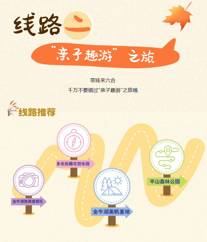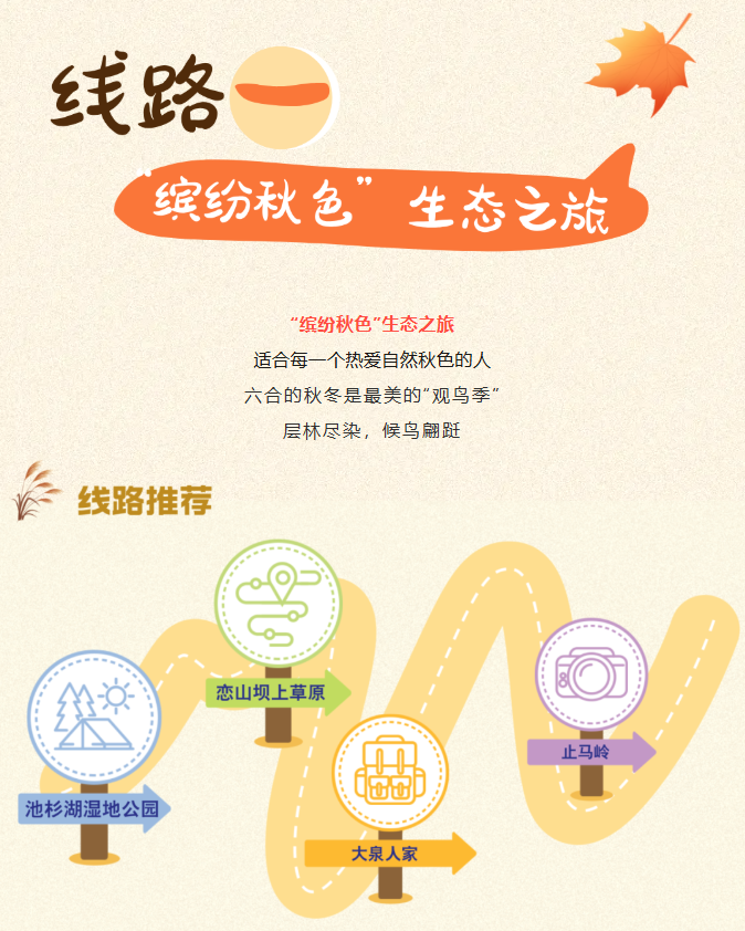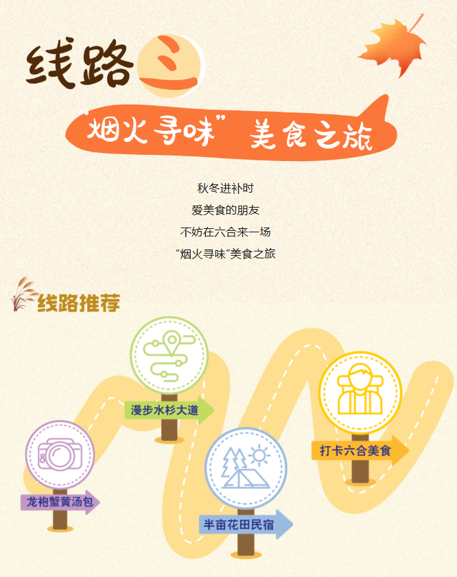 秋冬之交,六合披上了一袭橙黄橘绿的华裳,绚烂多彩我们精心策划了三条“两天一夜”旅游线路——“缤纷秋色”“亲子趣游”“烟火寻味”,邀请大家相遇六合,共诉美好,共赴一场诗意盎然的邂逅。