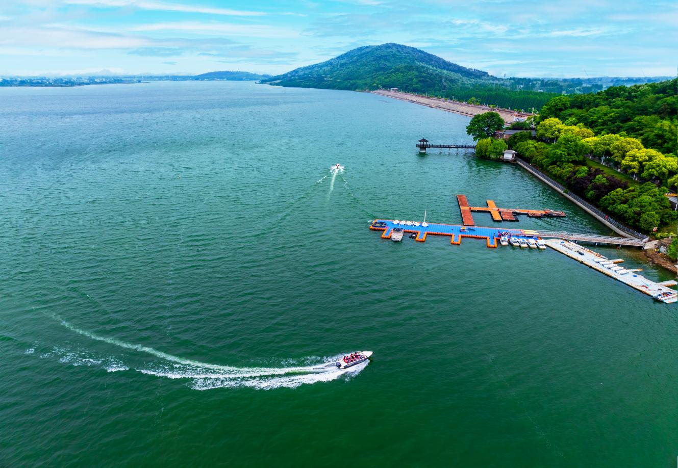 金牛湖景区群山环抱,湖水碧绿、水清如镜,宛如一块碧玉镶嵌在群峰之中。金牛湖因山而名,与湖相伴的山体,酷似临水而卧的水牛,被称为金牛山。金牛山有着"天然氧吧"的殊荣,海拔196米,森林植被面积5000亩,植被覆盖率达96%,山上长满了以松树和水杉为主的生态树,还有大量的椿、檀、红枫等阔叶树及野生竹林,林中生活着野兔、野鸡、野鸭、白鹭等野生动物近百种。金牛湖人文底蕴深厚,流传着一代布衣帝王朱元璋的动人传说,有始建于明代万历年间的金光禅寺,有传承了近3000年铁矿冶炼工艺,有浑然天成、神态各异的金龟探海、鲤鱼上山、情人石等众多旅游景点,令人目不暇接。山下有人工喂养的孔雀、黑天鹅等珍稀鸟类,国家二级保护动物猕猴也群居于此。山北有大片茶园,山后有金牛山战斗纪念碑等红色印记。近年来,打造了多种亲水游乐业态,吸引力不断提升。