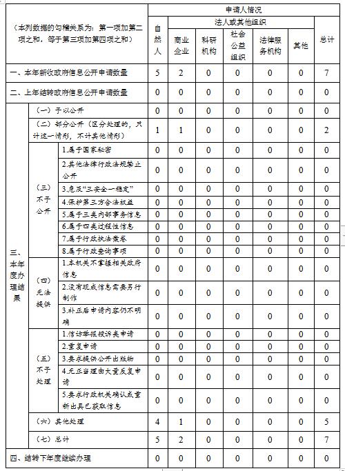 三、收到和处理政府信息公开申请情况