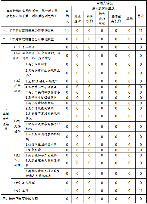 三、收到和处理政府信息公开申请情况