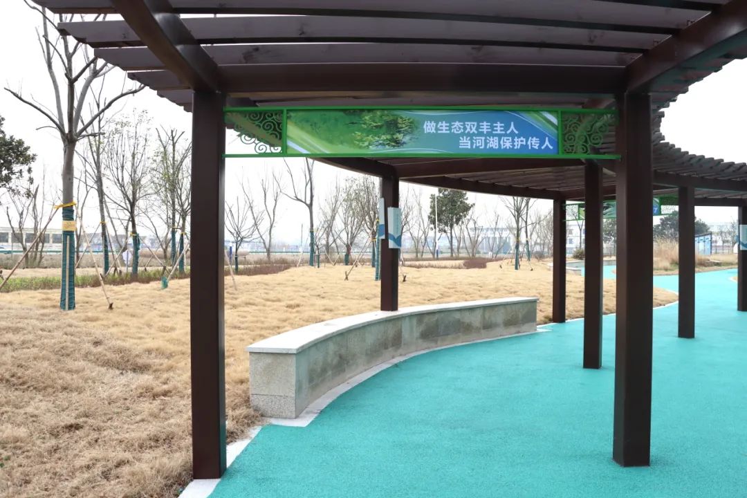 整个公园是一个结合自然景观和河长制文化的公园,拥有步行栈道、环形休息连廊、石刻景观等特色设施,以及展示河长制工作目标和成果的宣传展板,把“河长制”从“纸上”搬到“现实”,让广大市民在家门口就可以立体化感受“幸福河湖”的深厚底蕴。