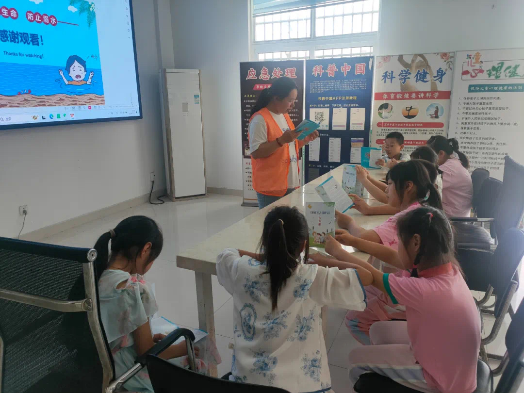 活动伊始,志愿者向现场小朋友讲解了防溺水的相关知识,教授失足落水时该如何自救,让孩子们了解溺水的危害,掌握防范措施。随后,志愿者为孩子们发放了《中华人民共和国未成年人保护法》宣传册,向小朋友们讲解未成年人保护相关法律知识,引导孩子们增强自我保护意识,提高自我保护能力。