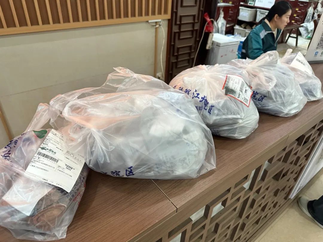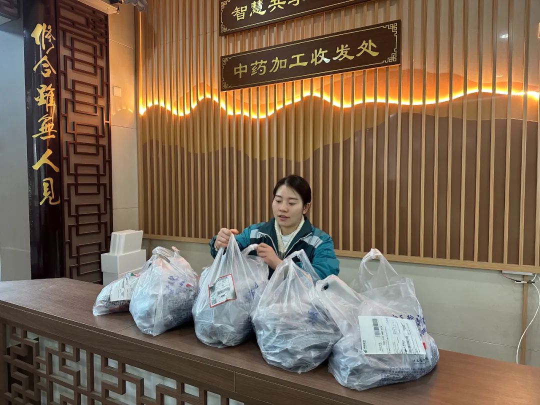 医院的专业药师在系统中接单后,会对处方进行严格审核,确保用药安全、合理。审核通过后,药师们根据患者意愿选择煎煮方式,然后由专业的物流配送企业将调配好、煎煮好的中药免费配送到社区卫生服务中心、卫生院中医馆或患者家中。