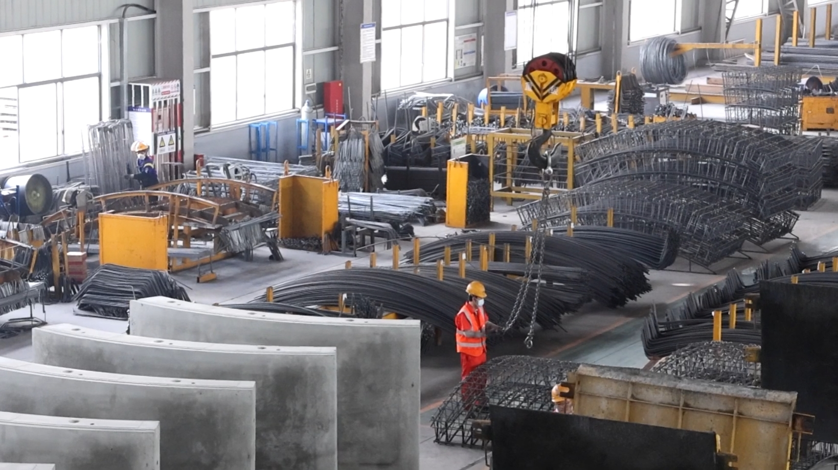 进入企业厂房,就听到起吊机和生产机器运作的轰鸣声,企业一片繁忙的生产景象,建筑工人正通过固定钢筋交叉点、浇筑混凝土等工序,制作预制盾构管片。今年一季度,企业实现产值约5000万元,南京地铁四号线二期过江大盾构隧道已于近日完工,目前正加紧推进宁芜铁路南京南隧道盾构管片项目,PC项目包括龙袍新城二期和南航国际创新港一期叠合板项目叠合板预制任务等。今年,企业也加大了对智能化和自动化技术的运用,不断提高生产效率。