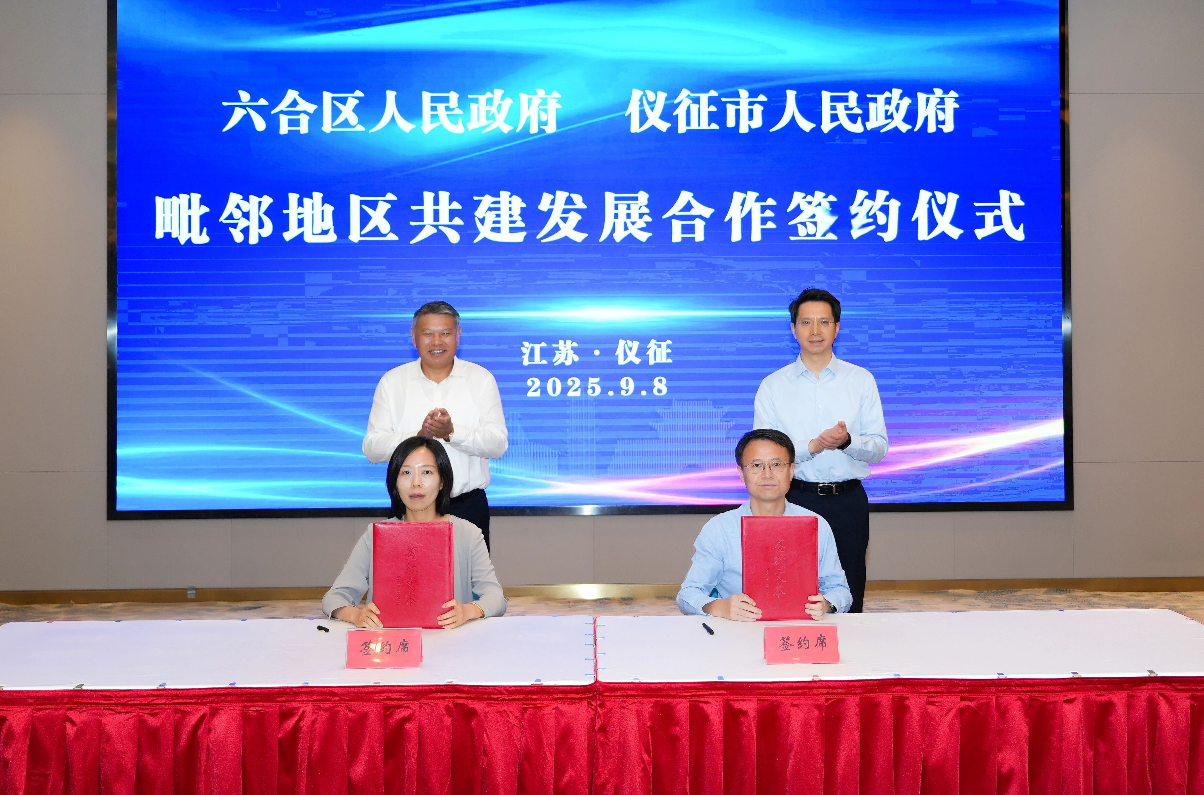 日前,六合区党政代表团赴仪征市学习考察,并与仪征市签订毗邻地区共建发展合作协议,以深化合作为两地高质量发展注入新动力、提供新支撑。六合区委书记周勇、仪征市委书记孟德和出席。