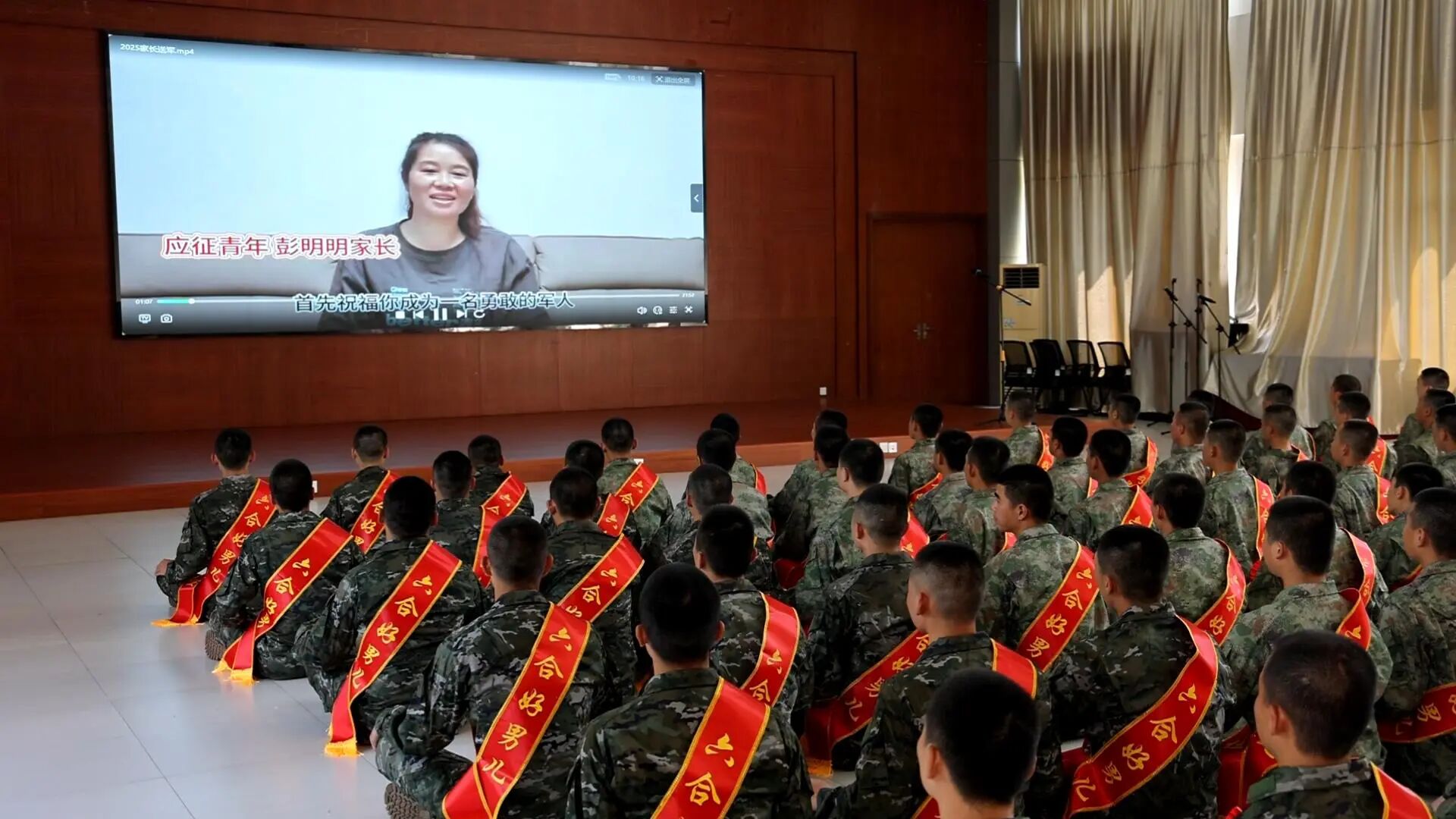 欢送大会结束后,现场还组织观看了新兵家长寄语视频。视频中,家长们的叮嘱与祝福温情满满,让新兵们感受到了家庭的温暖与支持,也进一步坚定了他们从军报国的信念。