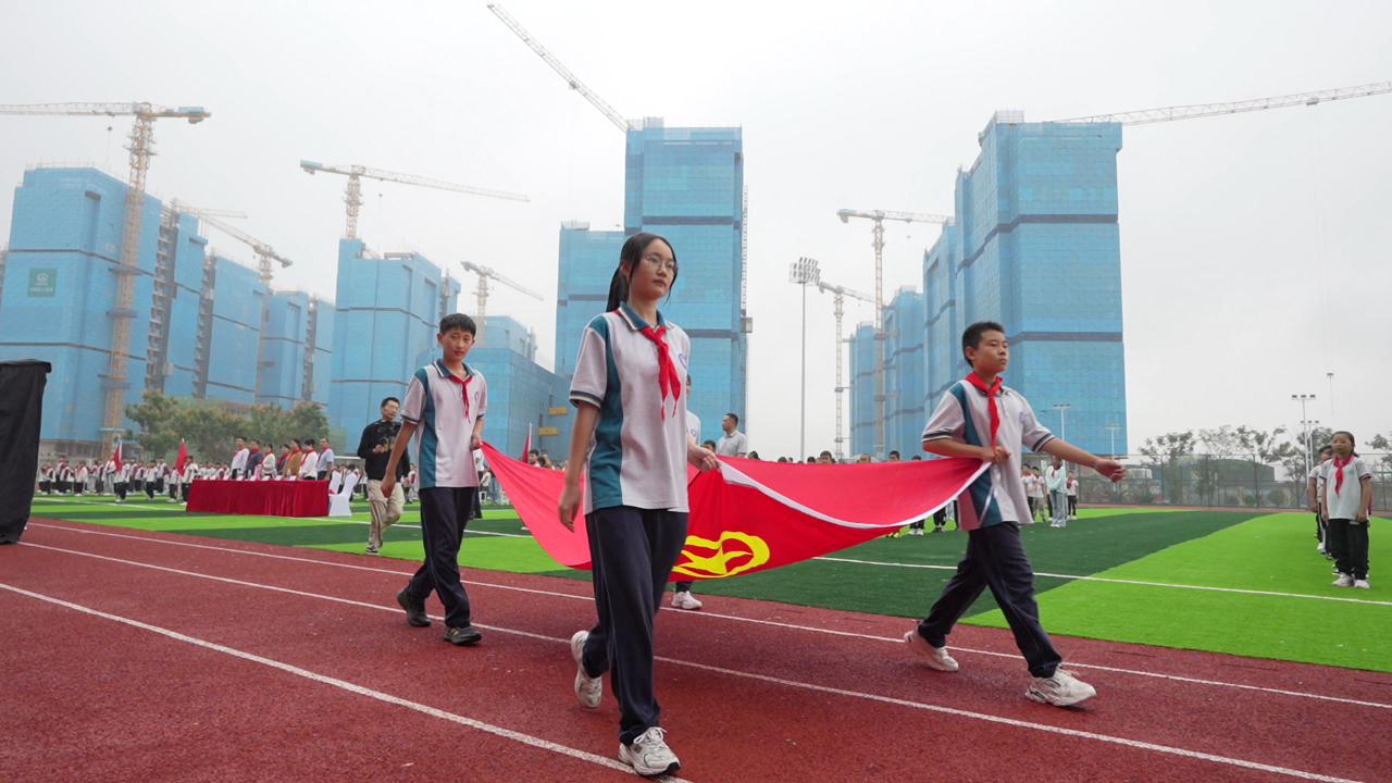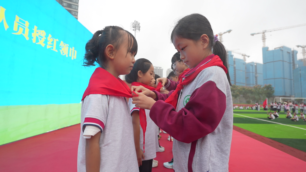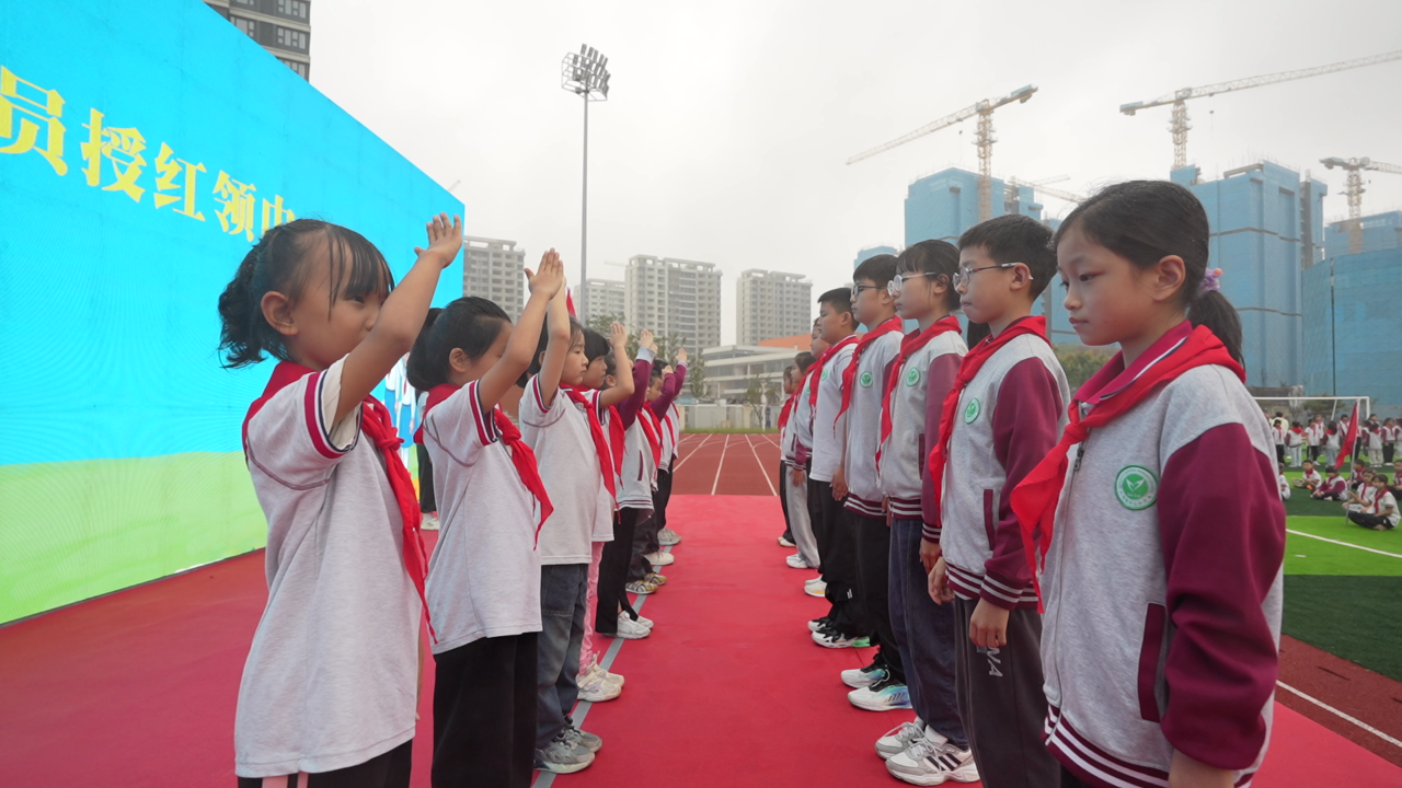 “我们是共产主义接班人,继承革命先辈的光荣传统……”伴随着庄严的出旗仪式,嘹亮的《中国少年先锋队队歌》响彻校园。红领巾,是童年的红色印记,也是岁月的共同记忆。现场,老队员郑重地为新队员佩戴上鲜艳的红领巾,新老队员互相敬礼,这一刻,少先队组织的优良传统得以传承。火红的队旗下,全体少先队员高举右拳,进行入队宣誓,胸前鲜艳的红领巾,也成为他们逐梦路上最耀眼的光芒。